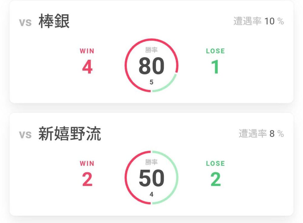 さらに、きれ負けで負けていた分の4割くらいも勝ち星を拾え、勝利率も6%ほどアップいたしました。