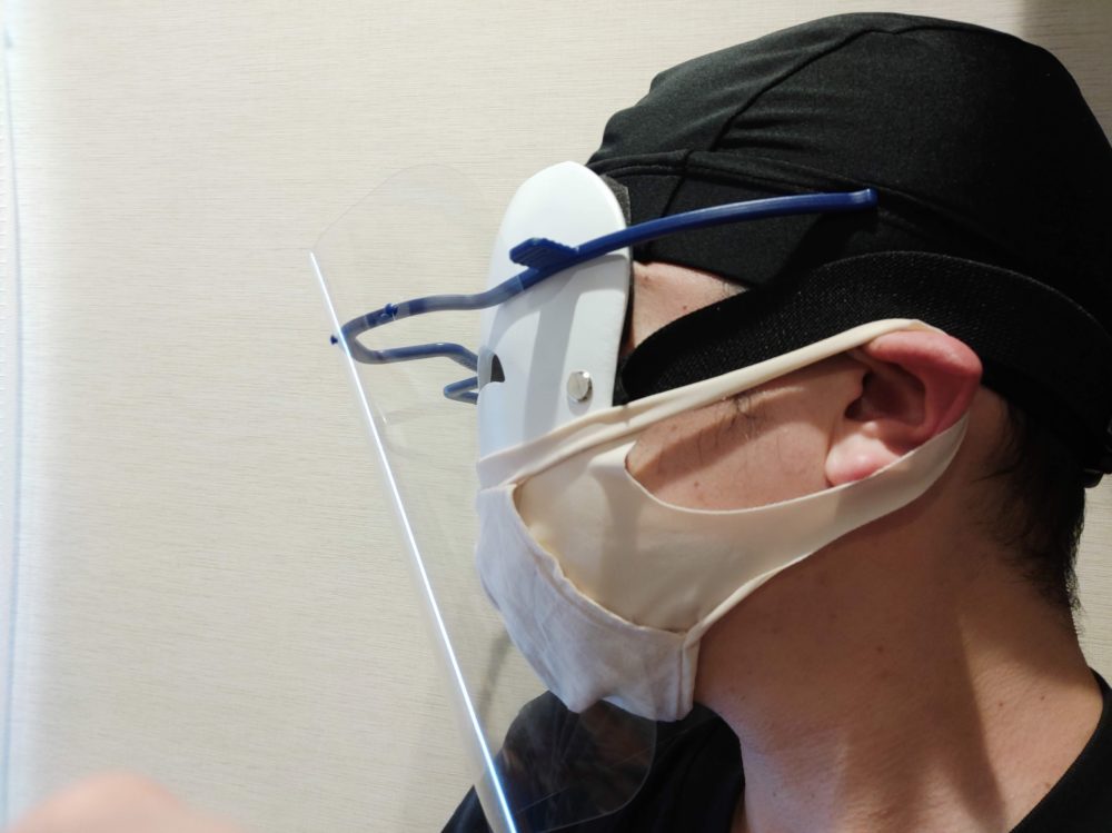 というのも、顔を触ろうとすると手がフェイスシールドにあたるため。触ることを意識的にやめることができます。