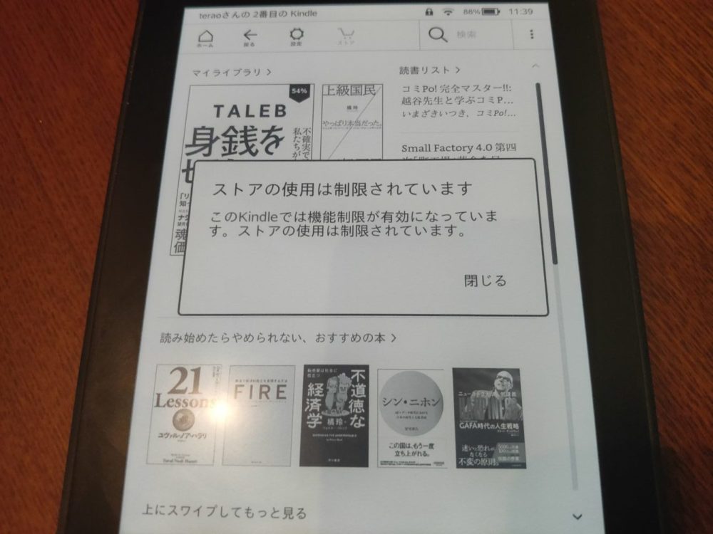 - kindle端末を買わないといけない(ほぼ読書用の専用機)