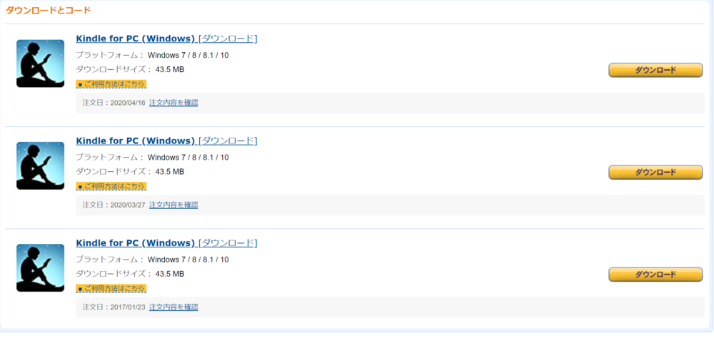 ・・・画像にkindle for pcが3つもあるのは無視してくださいw(無料なので何度でも買えます)。