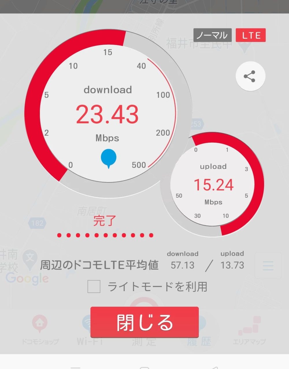 また、速度の測定はドコモスピードテストを用いて行っています。