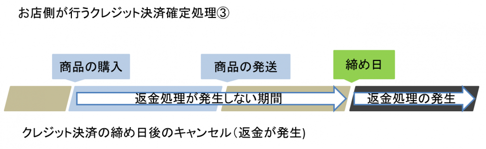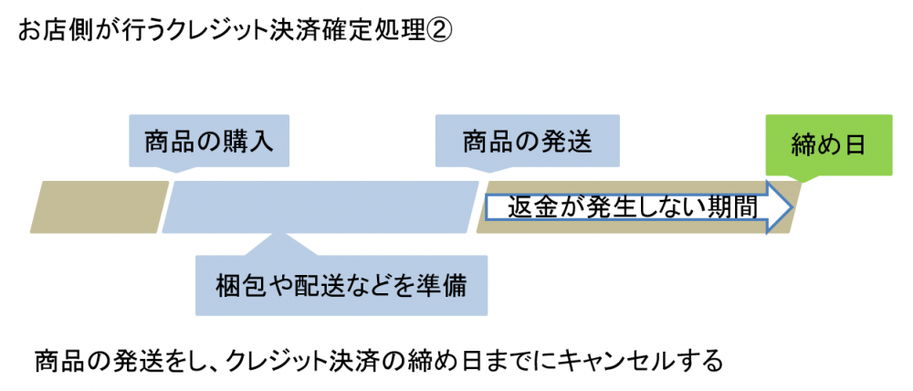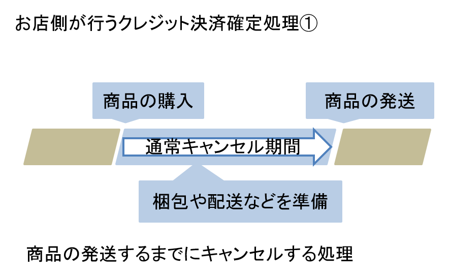 お店側がクレジット決済を申請(確定)することで、初めて、クレジット会社の決済が行われます。