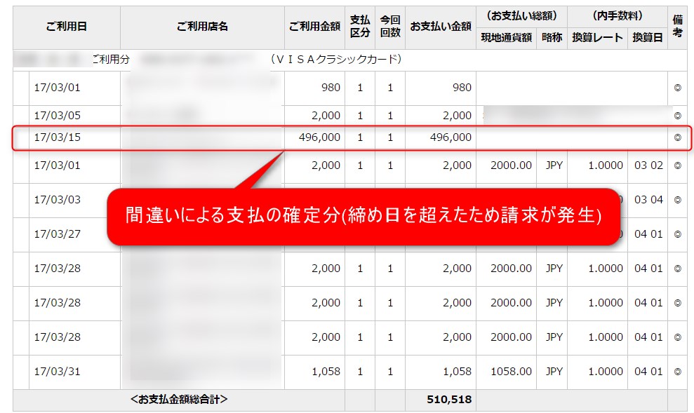 - 5月26日 クレジット会社支払い(キャンセルした分も請求される)
